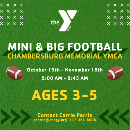 MINI & BIG Football will introduce children to the sport through FUN skills and drills and will require participation from a Big (parent, guardian, sibling 15 or older)