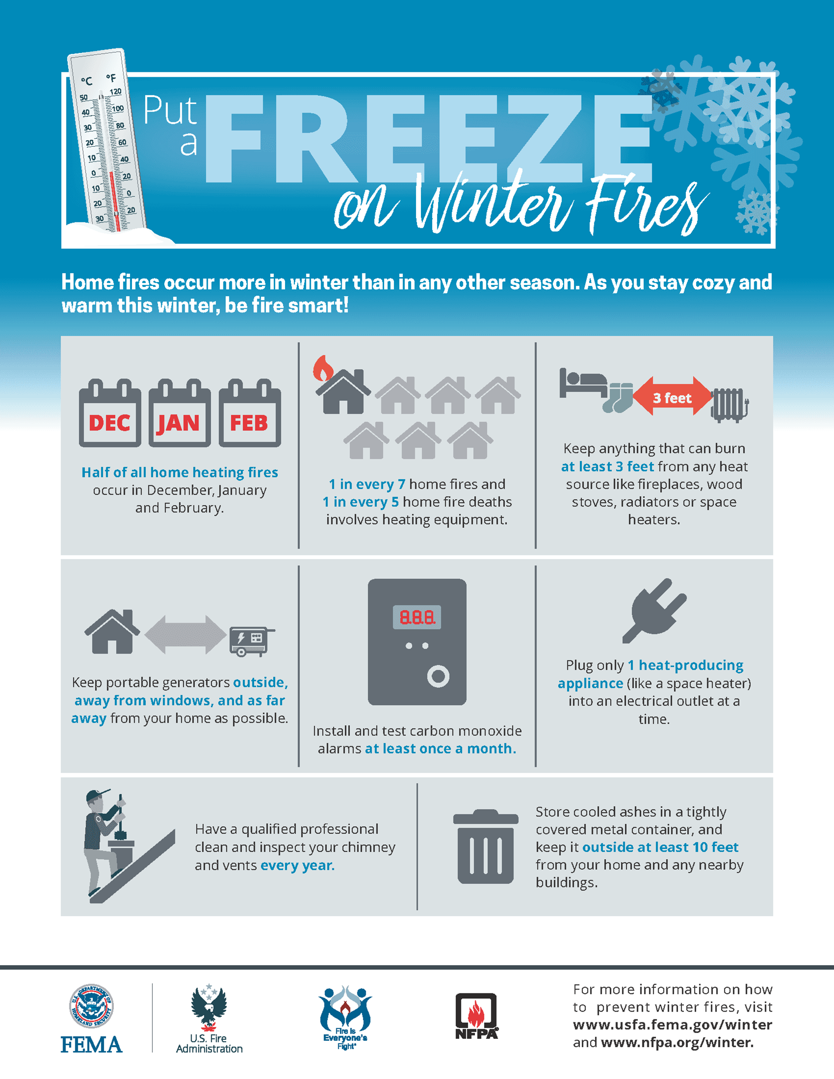 The Y would like to share some tips to help keep you and your family safe and warm this winter. Information provided by FEMA, U.S. Fire Administration, Fire is Everyone’s Fight and NFP. View the original article HERE.