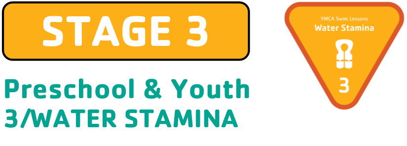 In stage 3, students learn how to swim to safety from a longer distance than in previous stages in the event of falling into a body of water. This stage also introduces rhythmic breathing and integrated arm and leg action.